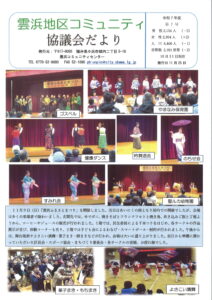 9月29日日曜日雲浜小学校グランドで多くの皆さんにご参加いただき雲浜地区民体育大会が開催されました。千種一丁目の中村ファミリーの皆さんによる選手宣誓ではじまり、白熱した競技やちびっこたちのかけっこなど楽しい一日となりまし […]